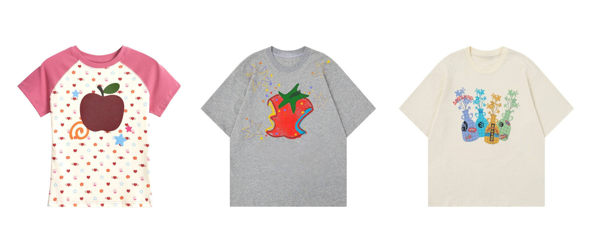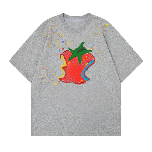 Artistic Tomato Print Grey T-Shirt