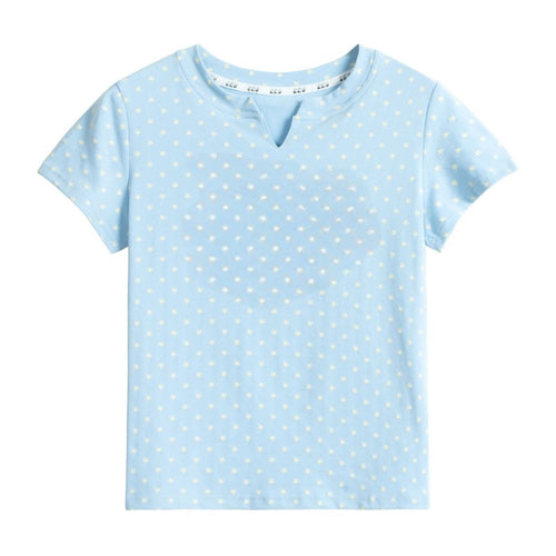 Blue T-Shirt with All-Over Star Print and Standard Shoulders